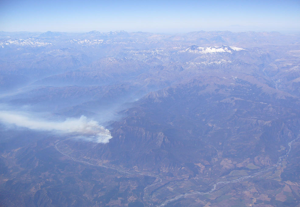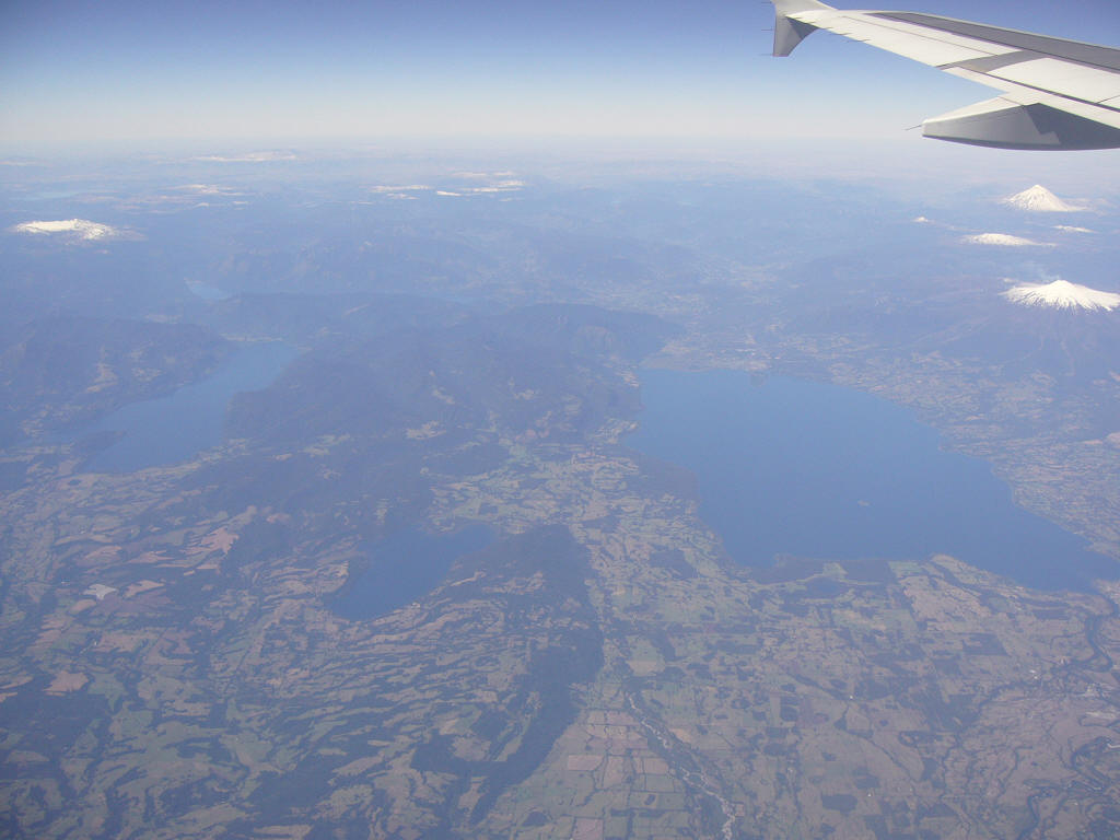 サンチャゴからプエルト・モンの間は火山が多い。もくもくと煙を上げている山や、小富士が沢山見える。高い山並を中腹でスパッと切ったような台地や湖水も多い。「湖水地方」だ。