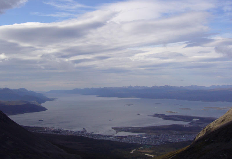 雪渓から見下ろしたウシュアイアとビーグル水道