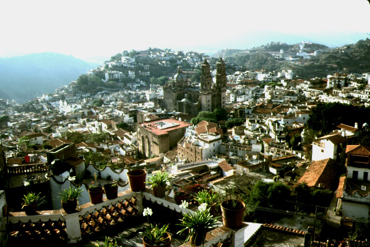 上の方から見下ろしたTAXCOの中心部。撮影場所もまだ街の中だよ。次の画像は教会の前から。